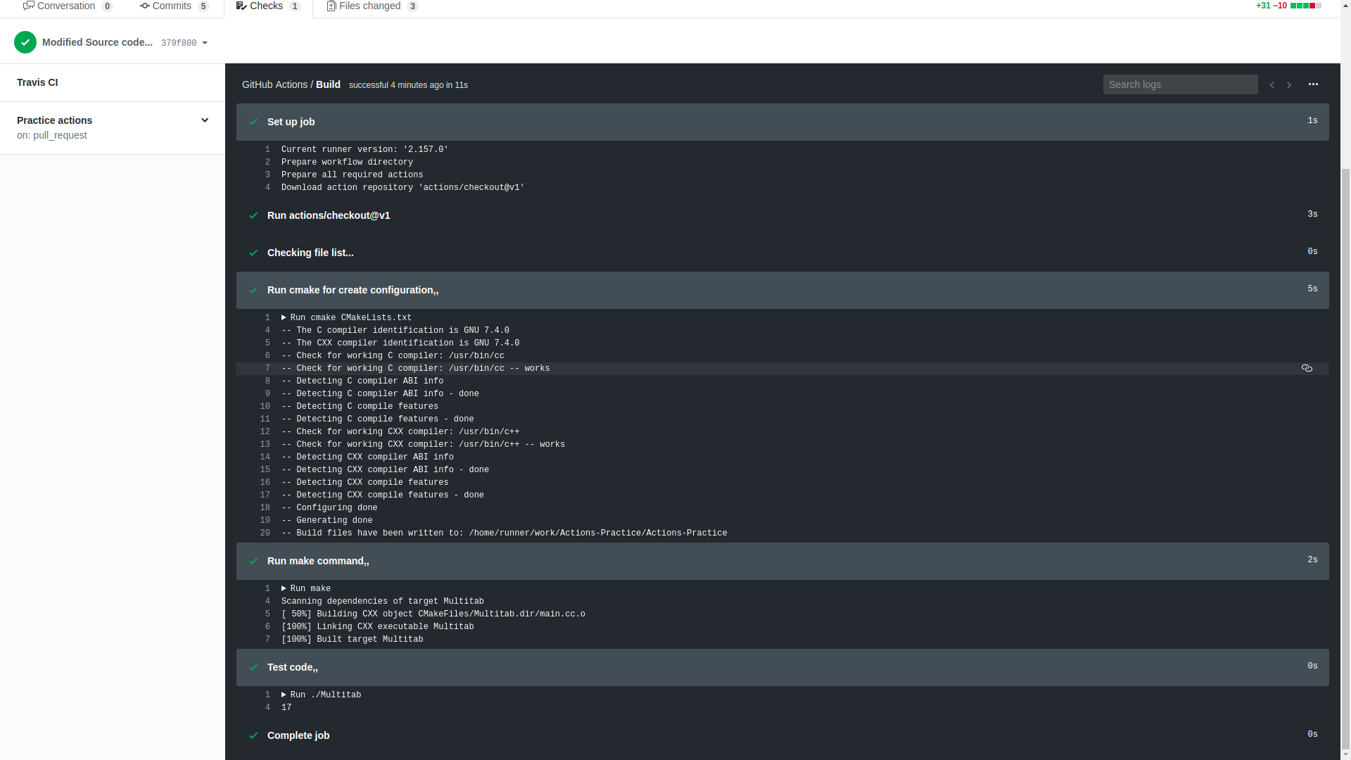 ๊ทธ๋ฌ๋ฉด ์ด๋ ๊ฒ Action ๋ณ๋ก ์คํ๋ ์ฌํญ์ ๋ณด์ฌ์ฃผ๊ฒ ๋ฉ๋๋ค. Travis CI๋ฅผ ์๋ง ๋น๋ ํ๊ฒฝ์ผ๋ก ์ฌ์ฉํ๊ณ ์๋ ๋ฏํ๊ณ , UI ๋ํ Travis CI์ ๋งค์ฐ ํก์ฌํ๊ฒ ์๊ฒจ์ ๋ณด๊ธฐ ํธํ ์ ๋ ์๋ค์..