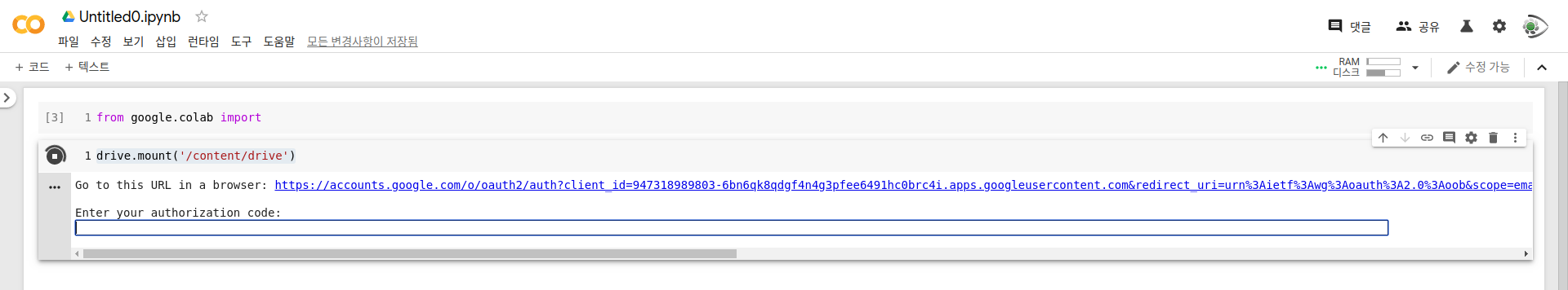 ์์ ์ ๋๋ผ์ด๋ธ๋ฅผ ๋ง์ดํธํ๊ธฐ ์ํด ์ธ์ฆํค๋ฅผ ์ ๋ ฅํ๋ผ๋ ๋ฉ์์ง์ ๋๋ค. ํ๋์์ ๋งํฌ๋ฅผ ๋๋ฌ, ์ธ์ฆํค๋ฅผ ๋ฐ์ผ์ ํ, ๋ฐ์ผ์ ์ธ์ฆํค๋ฅผ ๋ฃ์ผ๋ฉด ์๋์ ๊ฐ์ด ๋ง์ดํธ๊ฐ ์๋ฃ๋ฉ๋๋ค.
