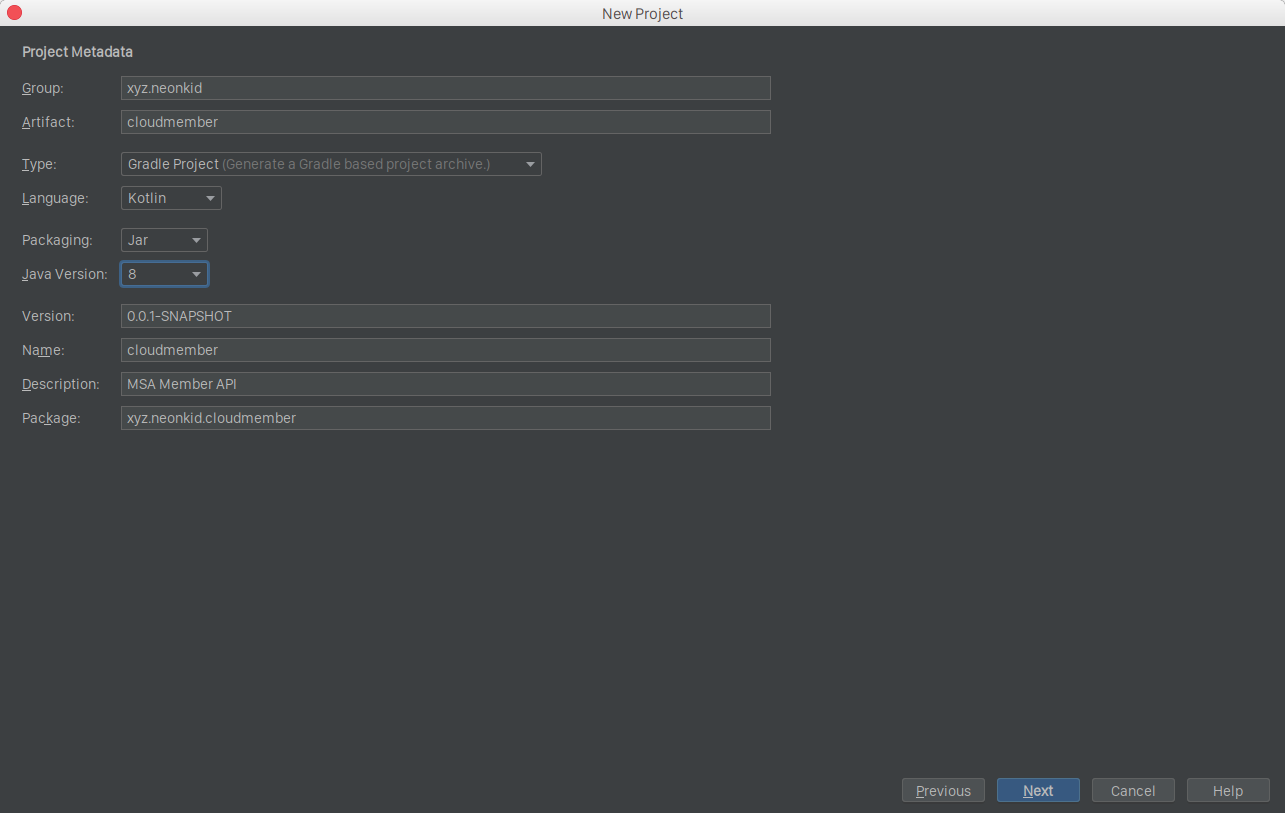 ์ ๋ ์์กด์ฑ ๋งค๋์ ๋ก Gradle์ ์ฃผ๋ก ์ฌ์ฉํฉ๋๋ค. ๋ฐ๋ผ์ Type์ Gradle๋ก ๋ง์ถฐ์ฃผ์๊ณ , ์ด๋ฒ ํฌ์คํธ์์๋ Java๊ฐ ์๋ Kotlin์ ์ฌ์ฉํ์ฌ API ์๋ฒ๋ฅผ ๋ง๋ค์ด๋ณด๋๋ก ํ๊ฒ ์ต๋๋ค.
