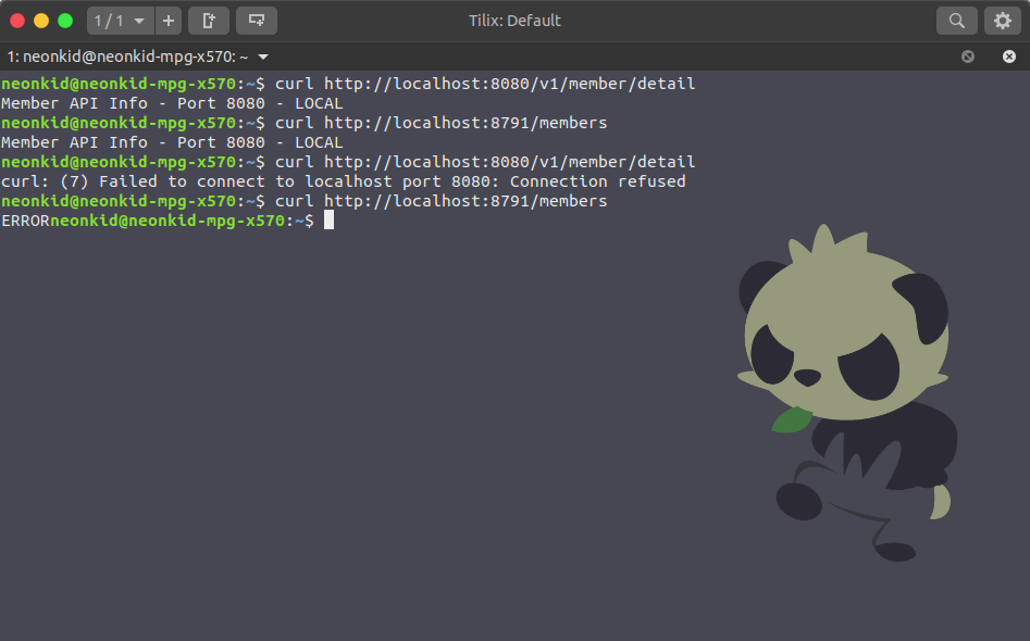 ๋ ์๋น์ค ๋ชจ๋ ๊ฐ์ ๋ช ๋ น์ ํธ์ถํ๊ณ ์์์ ์ ์ ์์ต๋๋ค. ์ด์ API ์๋น์ค๋ฅผ ํ ๋ฒ ์ข ๋ฃํ ํ, ๊ฒฐ๊ณผ๋ฅผ ๋ณด๋๋ก ํ์ฃ .