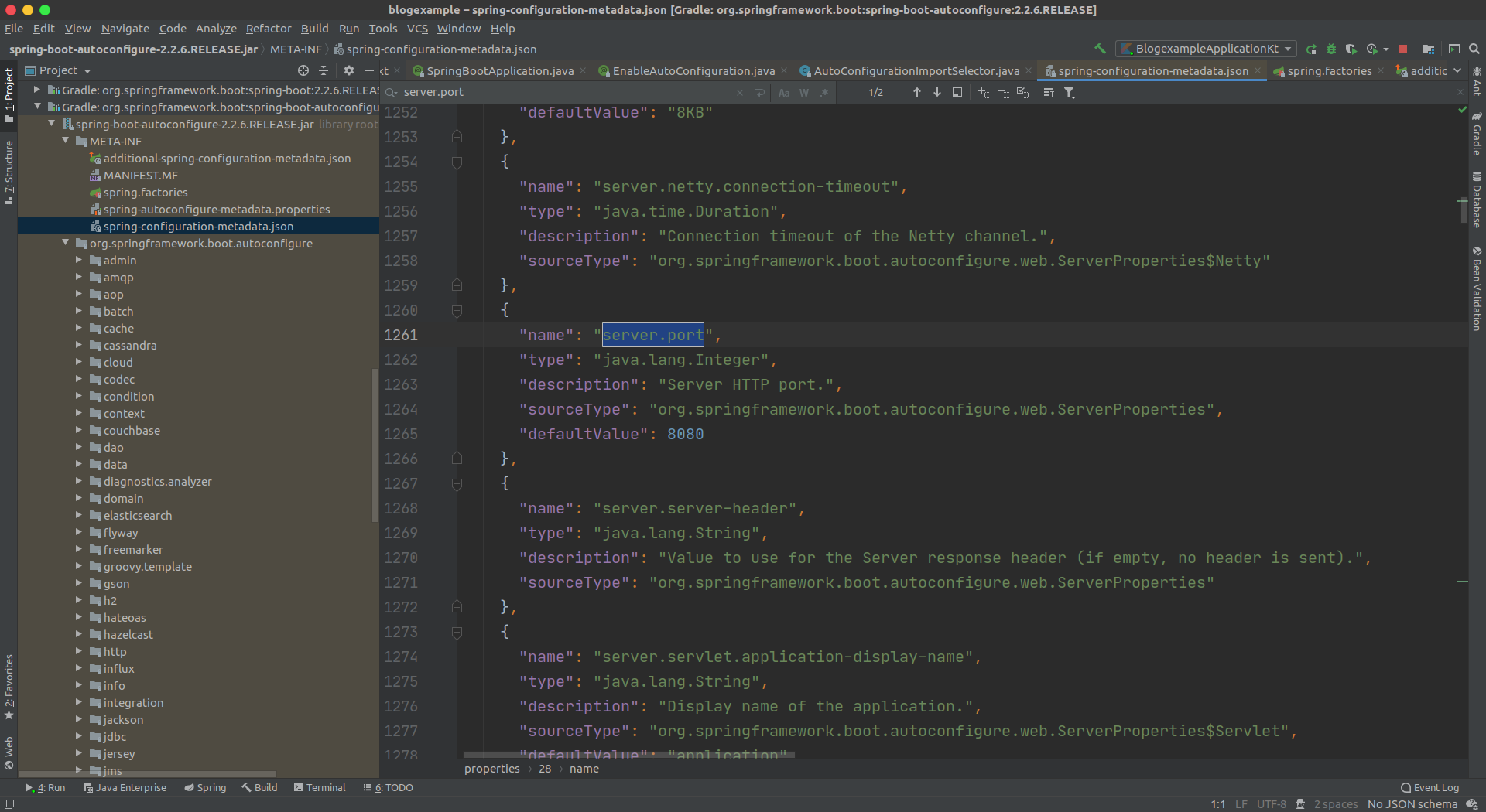 - ์๋ ์ค์ ๋์ ํด๋์ค ๋ชฉ๋ก์ผ๋ก @EnableAutoConfiguration ์ฌ์ฉ์, ํด๋น ํด๋์ค๋ค์ ์๋ ์ค์ ๋์์ด ๋๋ค. - META-INF/spring-configuration-metadata.json: ์๋ ์ค์ ์ ์ฌ์ฉํ Property ์ ์ ํ์ผ์ด๋ค.