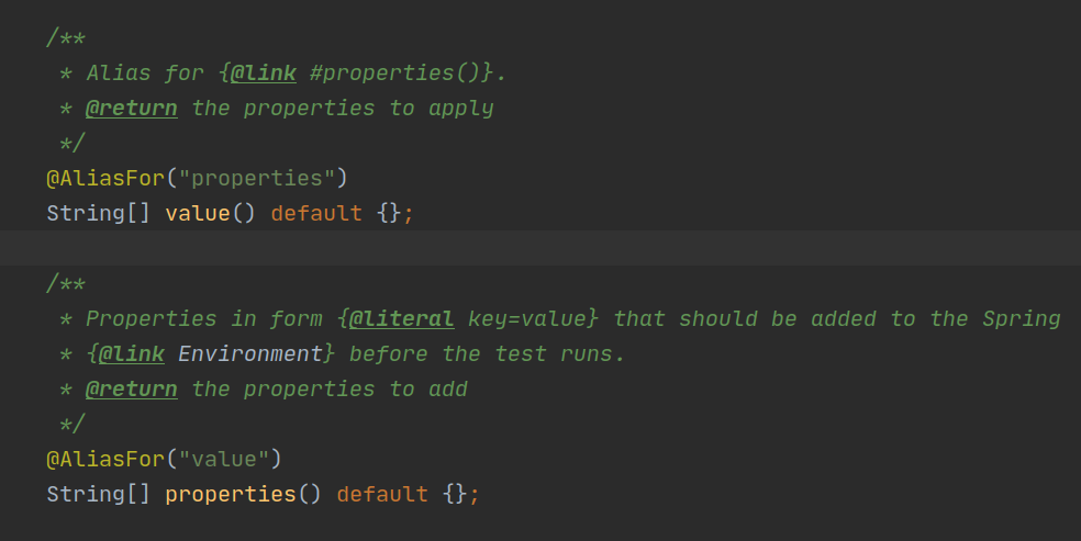 - value: ํ ์คํธ๊ฐ ์คํ๋๊ธฐ ์ ์ ์ ์ฉํ Property๋ก, ๊ธฐ์กด์ Property๋ฅผ Override ํฉ๋๋ค.