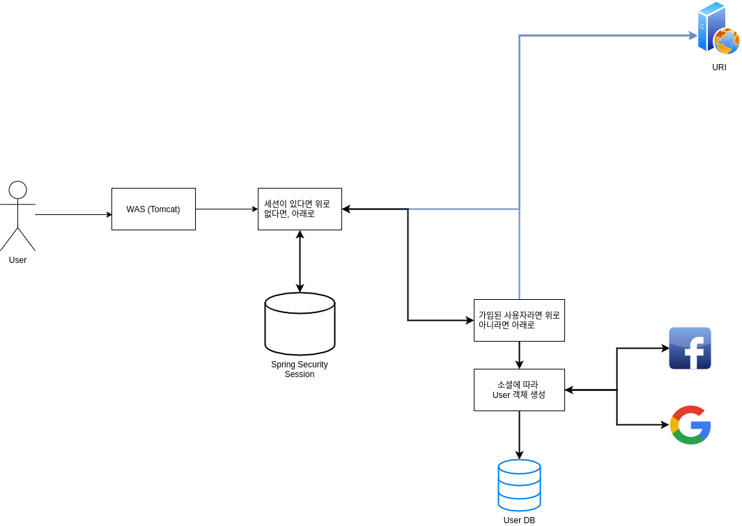 ๋ณดํต User, Password ํํ๋ก ๋ก๊ทธ์ธ์ ๊ตฌํํ๋ค๋ฉด ์ผ๋ฐ์ ์ผ๋ก ๋ก๊ทธ์ธ ์ ๋ณด๋ฅผ ์๋ฒ ๋ด ์ธ์ ์ ์ ์ฅํด๋์ ๊ฒ์ ๋๋ค. ์ด์ ๋ง์ฐฌ๊ฐ์ง๋ก ์์ ๋ก๊ทธ์ธ๋ ์ธ์ ์ ๋จผ์ ํ์ธํ ๋ค์, ๊ธฐ์กด ์ธ์ ์ด ์กด์ฌํ๋ค๋ฉด URI๋ฅผ ์์ฒญํ๊ณ , ๊ทธ๋ ์ง ์๋ค๋ฉด ๊ฐ์ ๋ ์ฌ์ฉ์์ธ์ง๋ฅผ ํ์ธํ ๋ค์, ๊ทธ๋ ์ง ์์ ๊ฒฝ์ฐ์ ์์ ์๋ฒ์ ์์ฒญํ์ฌ ์ฌ์ฉ์ ์ ๋ณด๋ฅผ ๊ฐ์ ธ์จ ํ, ์๋ ํ์ ๊ฐ์ ์ ์ฐจ๋ฅผ ์งํํ๋ ๋ฐฉํฅ์ผ๋ก ์์ ๋ก๊ทธ์ธ์ ๊ตฌํํ ์ ์์ต๋๋ค.