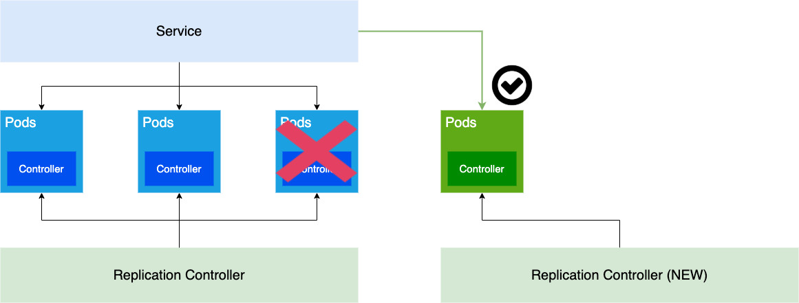 ์๋ก์ด Pod์ ์๋ก์ด ์ปจํ ์ด๋๊ฐ ์ํํ ํ์ฑํ ๋์์ ๋ ๊ธฐ์กด์ Pod์ด ์๋ฉธ๋๋ฉฐ ๋ง์ฝ, ์๋ก์ด Pod์์ ์ค๋ฅ๊ฐ ๋ฐ์ํ๊ฑฐ๋ ํ์ฑํ ํ์ง ๋ชปํ์ ๊ฒฝ์ฐ ์ด์ ์ Pod๋ ๊ทธ๋๋ก ์ด์ฉ๋๊ธฐ ๋๋ฌธ์ ์์ ํ๊ฒ ์๋ก์ด ์ ํ๋ฆฌ์ผ์ด์ ์ ์ ๋ฐ์ดํธ ํ ์ ์์ต๋๋ค.