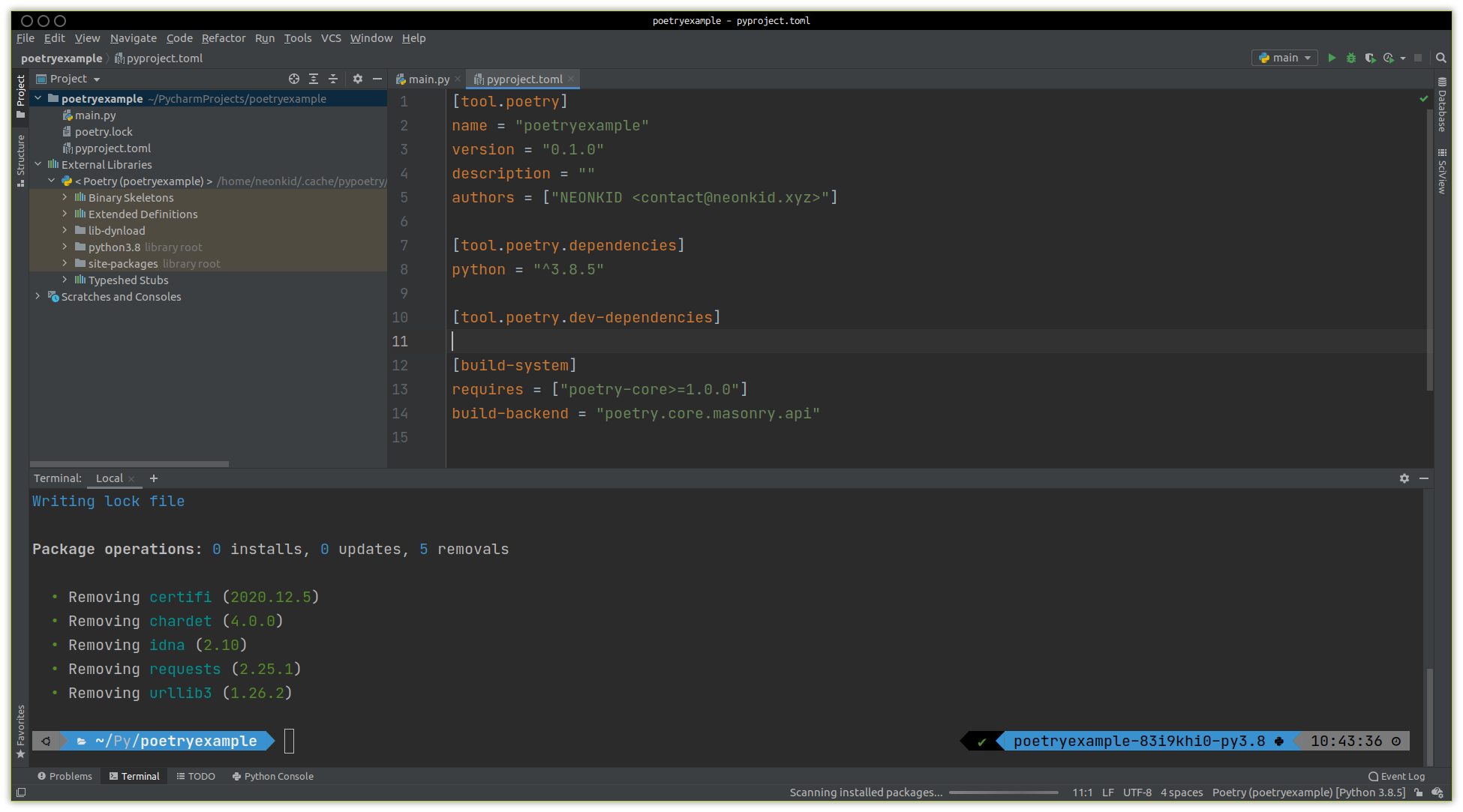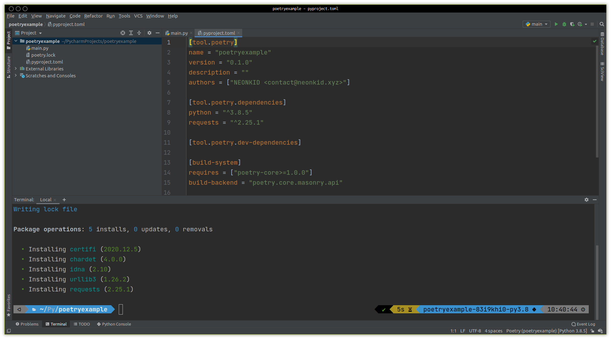 [Python] PyCharm์์ Poetry๋ฅผ ์ด์ฉํ ๋ํ๋์ ๊ด๋ฆฌ