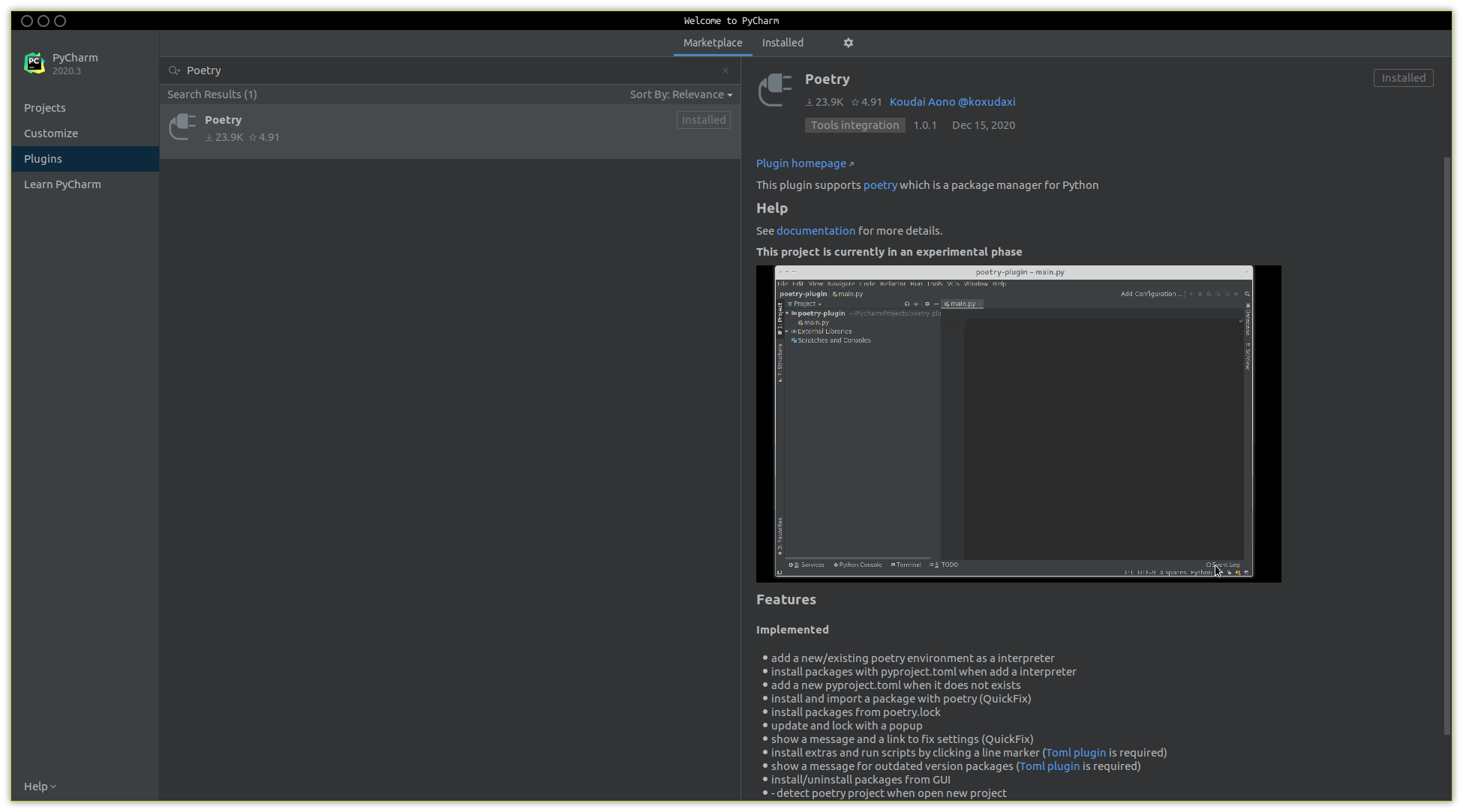PyCharm์์ Poetry๋ฅผ ์ฌ์ฉํ๋ ค๋ฉด ํ๋ฌ๊ทธ์ธ ์ค์น์ ๋ช ๊ฐ์ง ์ฃผ์ ์ค์ ์ด ํ์ํฉ๋๋ค.