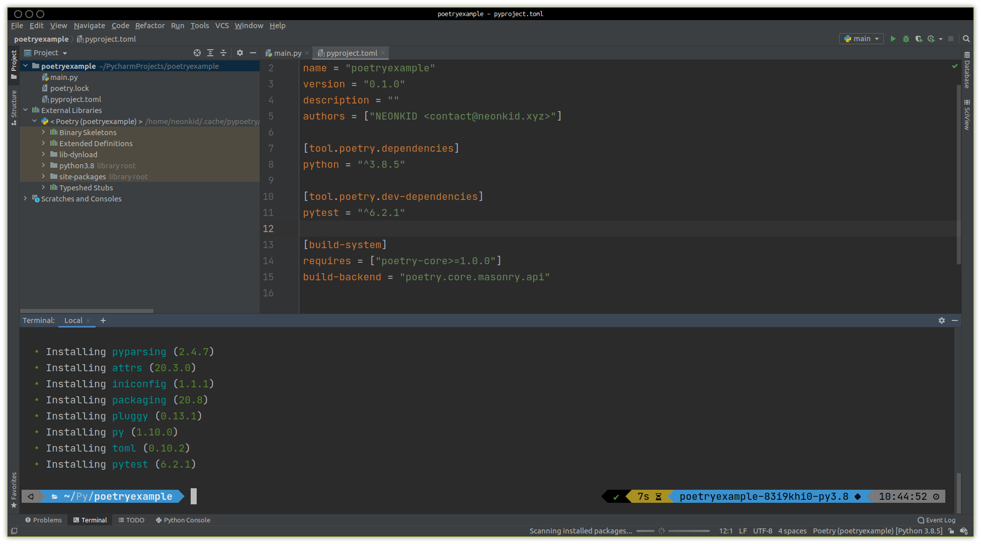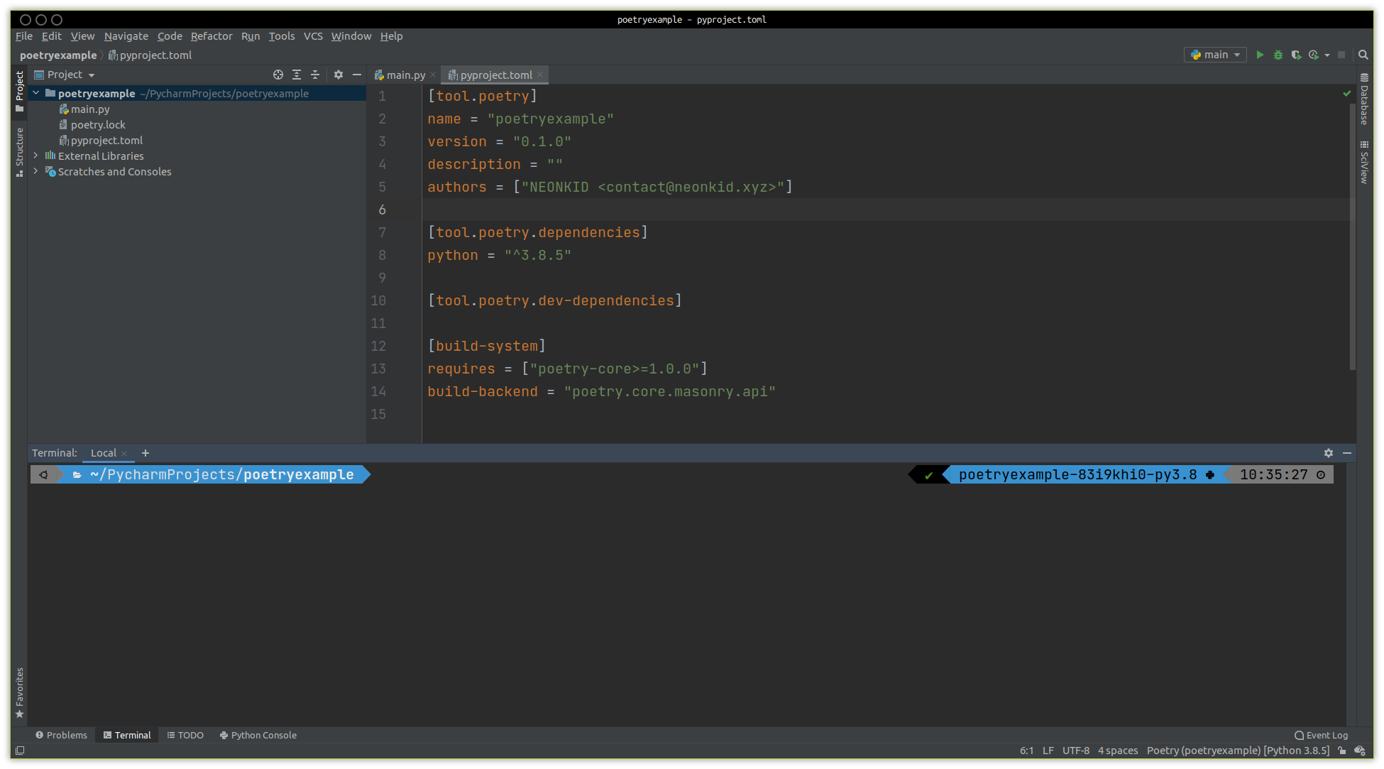 [Python] PyCharm์์ Poetry๋ฅผ ์ด์ฉํ ๋ํ๋์ ๊ด๋ฆฌ