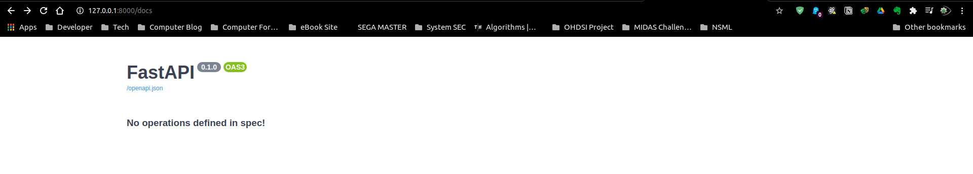 redoc์ ๊ฒฝ์ฐ๋ redoc URI๋ก ์ ์ํ์๋ฉด ๋ฉ๋๋ค. ์ง๊ธ์ ๋ณด๋ค์ํผ ๋ง๋ API๊ฐ ๋ง์ง ์๊ธฐ ๋๋ฌธ์ ๋ฌธ์์์ ์๋ฌด๋ฐ ๋ด์ฉ์ด ๋์ค์ง ์์ต๋๋ค. ์ฐจํ ๋ค๋ฅธ ๊ธ์์ FastAPI๋ฅผ ๊ฐ์ง๊ณ ์ด๋ป๊ฒ ๋ฌธ์๋ฅผ ์๋ํ ํ ์ ์๋์ง ์์๋ณด๋๋ก ํ๊ฒ ์ต๋๋ค.