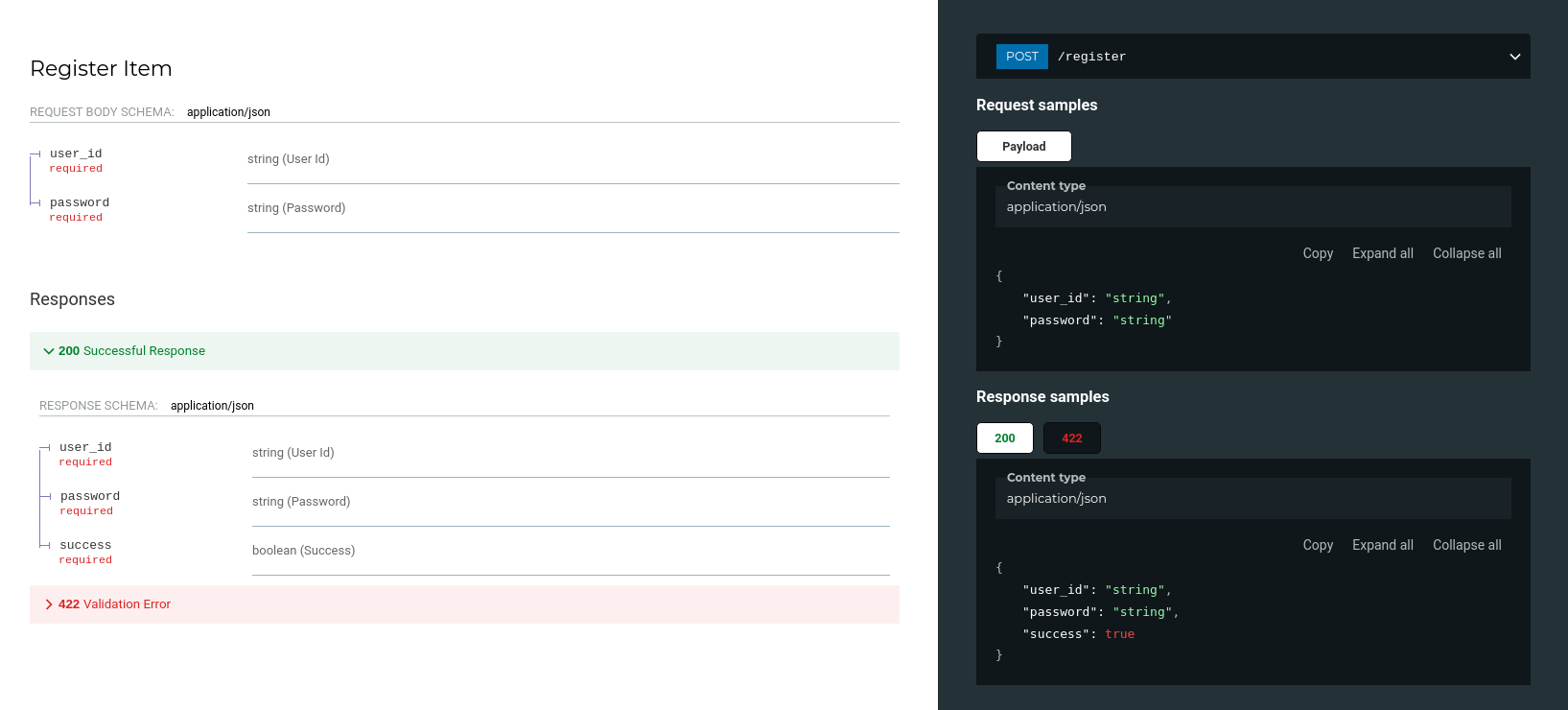 ์ ํ๋ฉด์ redoc์ ๋ชจ์ต์ ๋๋ค. ์ฐ๋ฆฌ๋ ์คํค๋ง ๋ชจ๋ธ๋ก Pydantic์ ์ฌ์ฉํ์๋๋ฐ์. FastAPI๋ Pydantic์์ ์ ๊ณตํ๋ BaseModel์ ๊ธฐ๋ฐ์ผ๋ก ํ์ฌ๊ธ Request, Response ํ์ ์ ๋ฌธ์๋ฅผ ์๋ํ ์์ผ์ค๋๋ค.