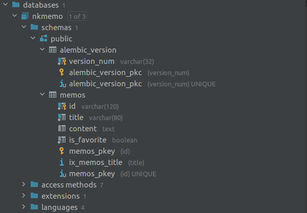 $ alembic revision --autogenerate -m "Initialize nkmemo entity.."