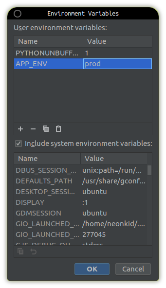 PyCharm์ ์ด์ฉํ๊ณ ์๋ค๋ฉด Run Edit Configurations์์ ํ๊ฒฝ ๋ณ์๋ฅผ ์ค์ ํด์ผํฉ๋๋ค. ์์ ๊ฐ์ด ํ๊ฒฝ ๋ณ์๋ฅผ prod๋ก ๋ณ๊ฒฝํ๊ฒ ๋๋ฉด...