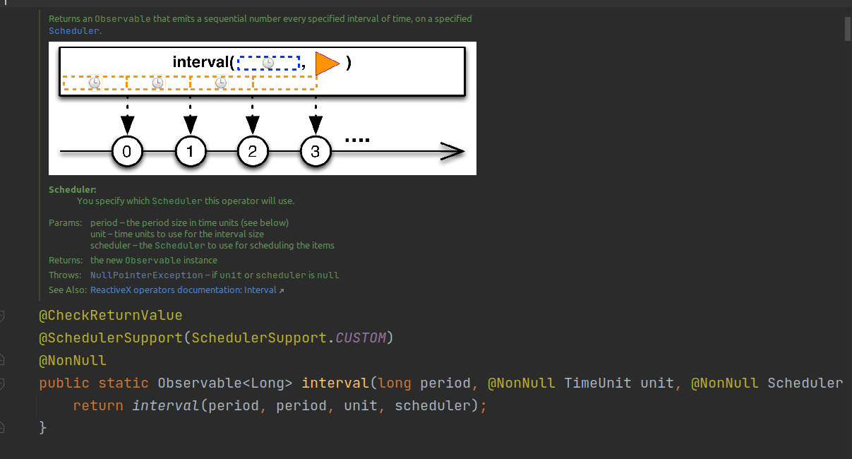 interval, timer์ ๋ง์ฐฌ๊ฐ์ง๋ก Scheduler๋ฅผ RxJava์ ๊ธฐ๋ณธ ์ค์ผ์ค๋ฌ๋ฅผ ์ด์ฉํ ์๋ ์๊ณ , ์ ์ํ ์๋ ์์ต๋๋ค.