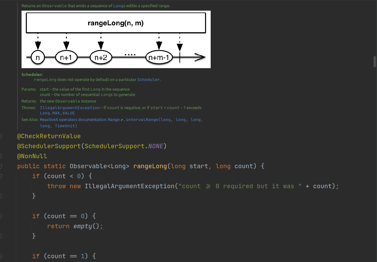 ๋ ํ ๊ฐ์ง, range์ ๋ฐ์ดํฐ ํ์ ์ด int์ธ ๊ฒ์ธ๋ฐ, long์ ์ฌ์ฉํ๊ธฐ ์ํด์๋ ์๋์ ๋ฉ์๋๊ฐ ๋ณ๋๋ก ์ ๊ณต๋ฉ๋๋ค.