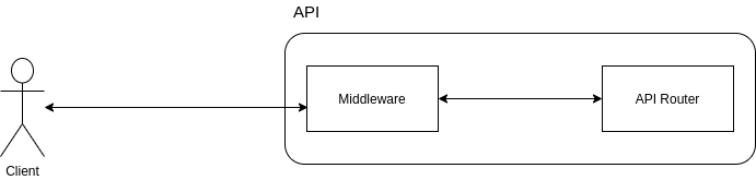 ํด๋ผ์ด์ธํธ๊ฐ ์์ฒญ์ ๋ฐ์ผ๋ฉด ์ด ์์ฒญ์ ๋จผ์ Middleware์์ ๋ฐ๊ฒ ๋ฉ๋๋ค. ๊ทธ๋ฆฌ๊ณ Middleware๋ ๋ค์ ์ด๋ฅผ API Router๋ก ๋๊ธฐ๊ฒ ๋๋ ๋ฐฉ์์ผ๋ก ์งํ๋ฉ๋๋ค.