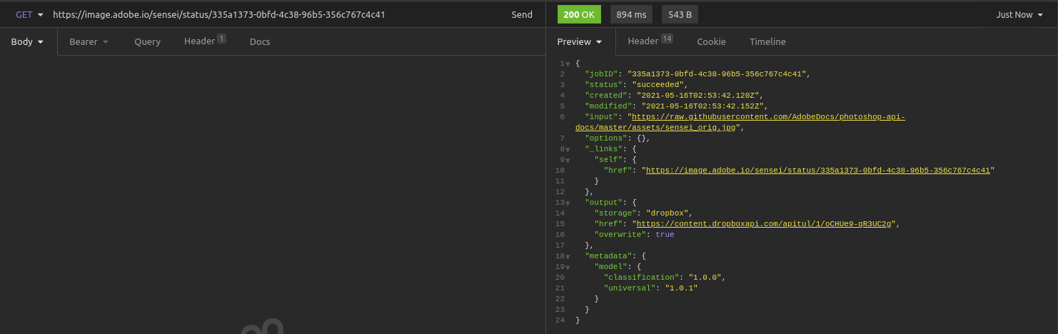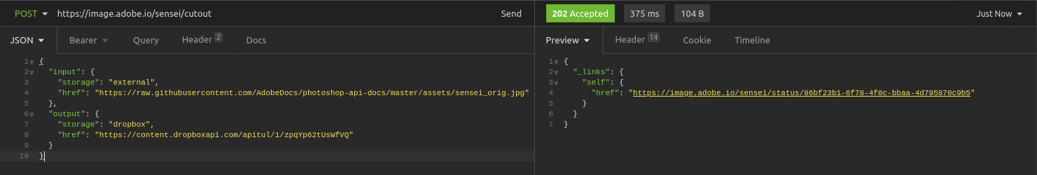 ์ด์ ๋ชจ๋ ์ค๋น๊ฐ ๋๋ฌ์ต๋๋ค. Adobe API ์ฌ์ฉ ์ค๋น๋ ๋์๊ณ , ๊ฒฐ๊ณผ๋ฌผ์ ์ ๋ก๋ํ ๋งํฌ๋ ๋ง๋ จํด๋์์ผ๋, ์ด์ ๋ฐฐ๊ฒฝ์ ์ง์ธ ์ด๋ฏธ์ง๋ฅผ ๋ฃ๊ณ , API๋ฅผ ํธ์ถํ๋ฉด ๋ฉ๋๋ค.