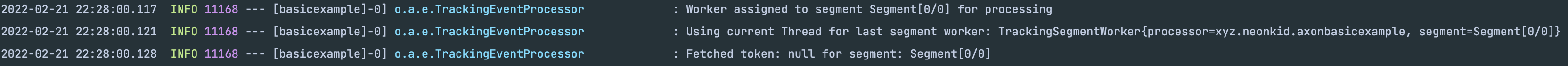 ์ ํ๋ฆฌ์ผ์ด์ ์คํ ํ ๋ก๊ทธ๋ฅผ ๋ณด๋ฉด TrackingEventProcessor๊ฐ ํ ๋น๋์์์ ์ ์ ์๋๋ฐ, ์ด ์ด๋ ธํ ์ด์ ์ด ๋ฐ๋ก ์ด๋ฒคํธ๋ฅผ ์ถ์ ํ๋ ๋ ์์ ๋๋ค.