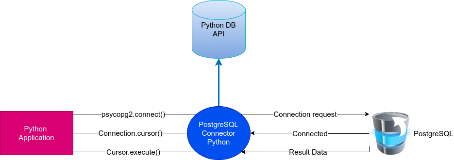 Python์์ ๋ฐ์ดํฐ๋ฒ ์ด์ค์ ์ฐ๊ฒฐํ๋ ๋ฐฉ๋ฒ์ ๊ฐ๋จํฉ๋๋ค. Application๊ณผ DB ์ฌ์ด์ Connector๊ฐ ์กด์ฌํ๋ฉฐ(DB๋ง๋ค ๋ค๋ฆ) ์ด ์ปค๋ฅํฐ๋ฅผ ํตํด ์ ํ๋ฆฌ์ผ์ด์ ์ DB๋ก ์ฐ๊ฒฐ์ ์์ฒญํฉ๋๋ค. DB์์ ์์ฒญ์ ์๋ฝํ๋ฉด, ์ปค์๋ฅผ ์ด์ฉํด SQL ์ฟผ๋ฆฌ๋ฅผ ์ง์ํ์ฌ ๋ฐ์ดํฐ๋ฅผ ๊ฐ์ ธ์ค๊ฑฐ๋ ์ ์ฅํ ์ ์์ต๋๋ค.