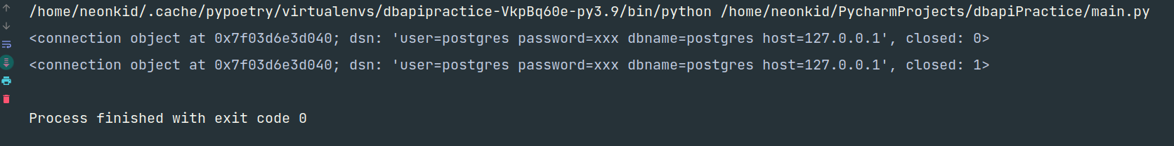 connect ๋ฉ์๋๋ฅผ ์ด์ฉํ์ฌ ๋งค๊ฐ๋ณ์์ DB ์ฃผ์๋ฅผ ์ง์ ํ๊ณ ๋ฉ์๋๋ฅผ ํธ์ถํ ๋ค์ ์ฐ๊ฒฐ ๊ฐ์ฒด๋ฅผ ์ถ๋ ฅํด๋ด ๋๋ค.