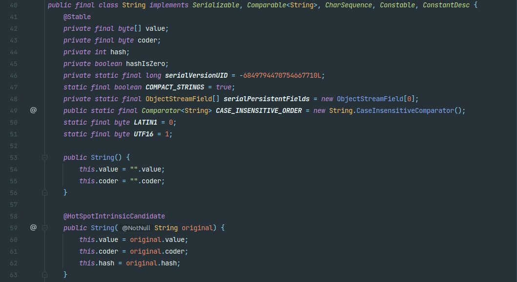 ์ข ๋ ๊ตฌ์ฒด์ ์ผ๋ก ์ดํด๋ณด๊ธฐ ์ํด String ํด๋์ค์ ์ฝ๋๋ฅผ ๊ฐ์ ธ์๋ดค์ต๋๋ค. String์ value๋ผ๋ ๋ฉค๋ฒ ๋ณ์์ ๊ฐ์ ๋ด๋๋ฐ, ์ด ๊ฐ์ final๋ก ์ ์ธ๋์ด ์๋๋ฐ๋ค private์ผ๋ก ๋์ด ์์ด, ์ธ๋ถ์์๋ ์ ๊ทผ๋, ์์ ๋ ์ ํ ์๋๋ ์ํฉ์ ๋๋ค.