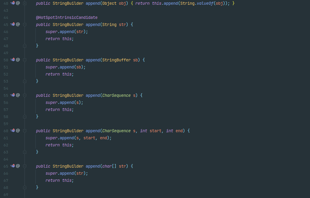 ๊ฐ์ ์ฝ๋๋ก StringBuffer ํด๋์ค๋ฅผ StringBuilder ํด๋์ค๋ก๋ง ๋ณ๊ฒฝํ๋ฉด ๋์ผํ๊ฒ ๋์ํ๋ ๊ฒ์ ์ ์ ์์ต๋๋ค. StringBuffer์ StringBuilder๋ ๋ชจ๋ AbstractStringBuilder ํด๋์ค๋ฅผ ๋ถ๋ชจ ํด๋์ค๋ก ๊ฐ์ง๊ณ ์์ผ๋ฉฐ capacity๋ ๊ธฐ๋ณธ๊ฐ์ด 16์ผ๋ก ๋์ผํฉ๋๋ค.