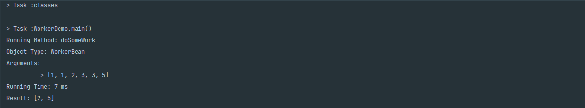 WorkerBean์ ์ด๋ค ํน์ ํ ์๊ณ ๋ฆฌ์ฆ ํจ์๋ฅผ ์ ์ํ๊ณ Spring Framework์์ ์ ๊ณตํ๋ StopWatch ํด๋์ค๋ฅผ ์ฌ์ฉํด ๋ฉ์๋๊ฐ ์คํ๋ ์๊ฐ์ ์ธก์ ํ๋ ์ฝ๋์ ๋๋ค.