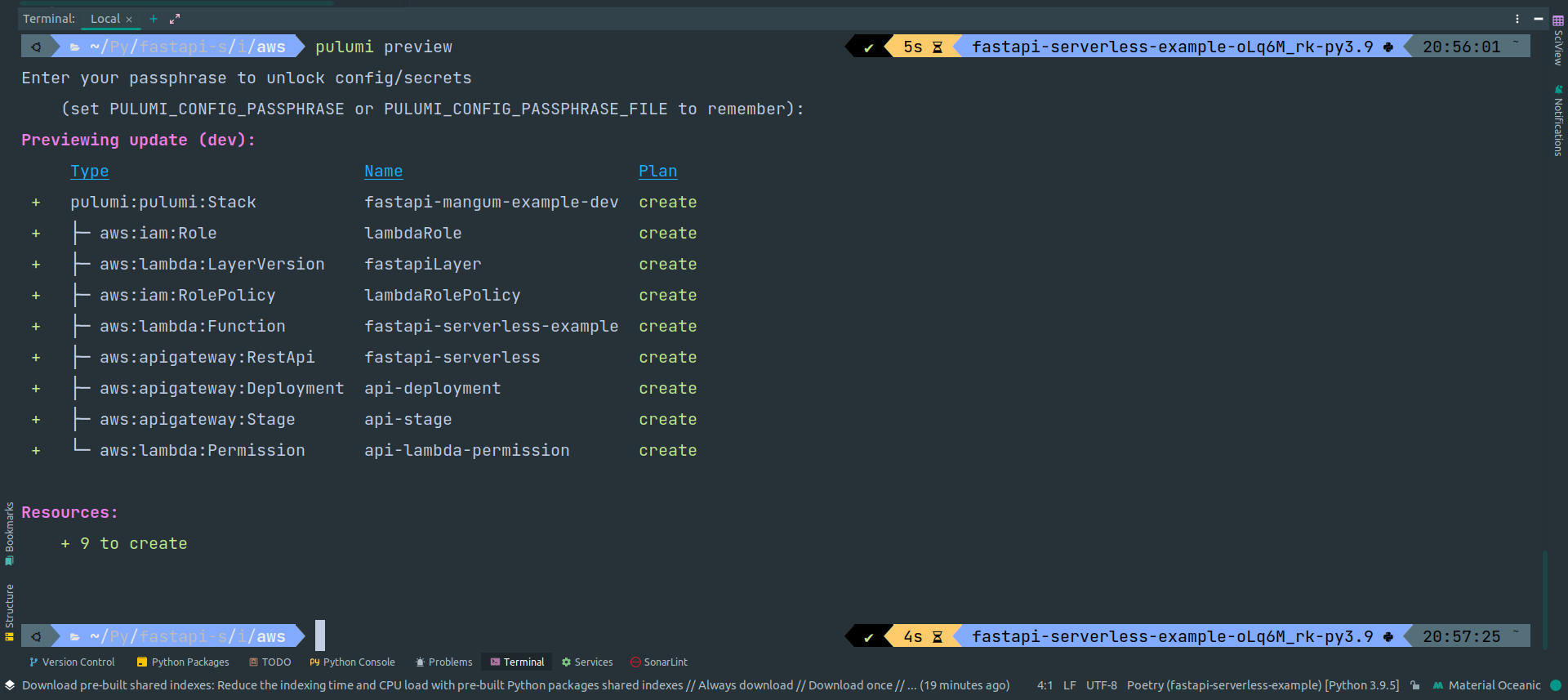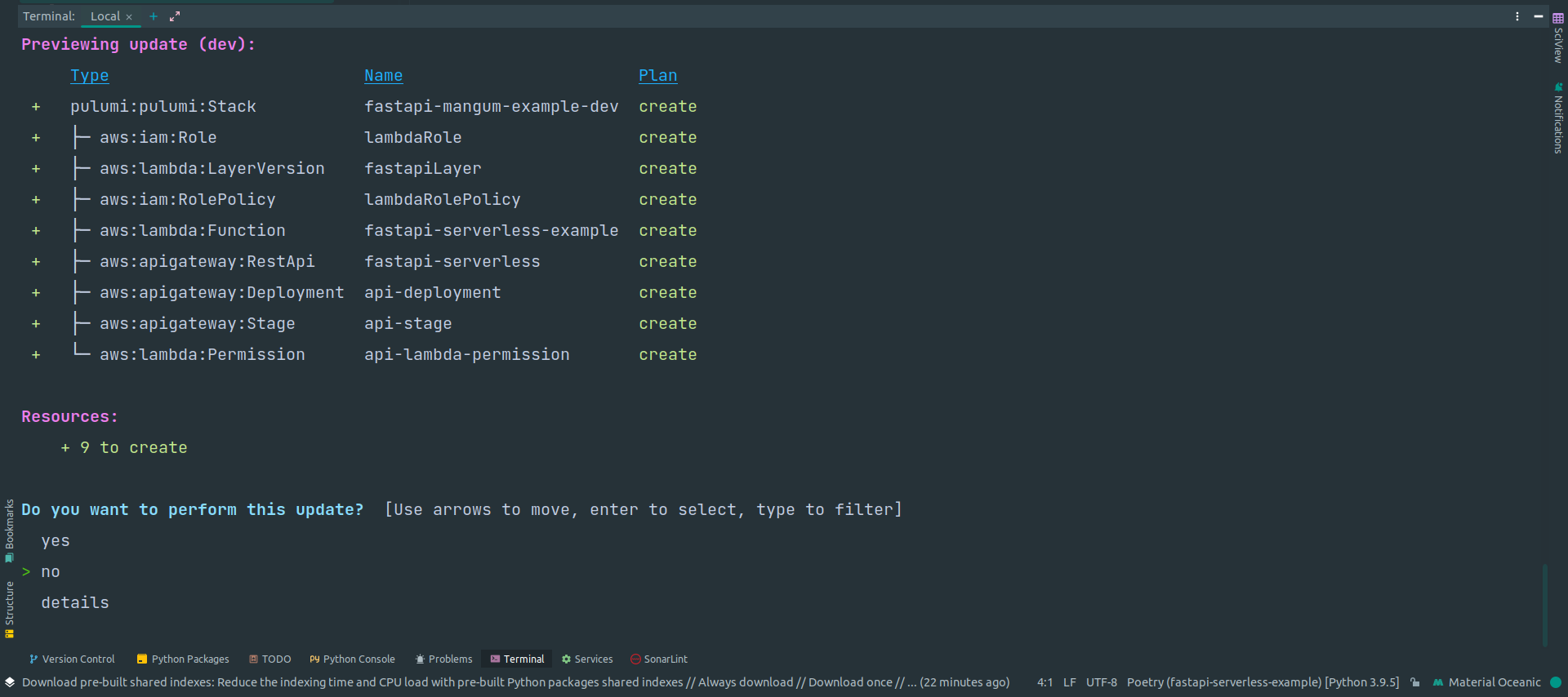 $ pulumi new aws-python