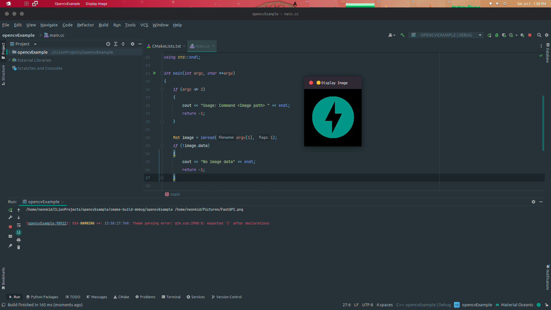 ๊ทธ๋ผ CLion์์๋ ํฐ๋ฏธ๋์ ๋ช ๋ น์ด๋ฅผ ์น์ง ์๊ณ ๋ฐ๋ก๋ฐ๋ก ์ด๋ฏธ์ง๊ฐ ๋ถ๋ฌ์์ง๋ ๊ฒ์ ๋ณผ ์ ์์ต๋๋ค.