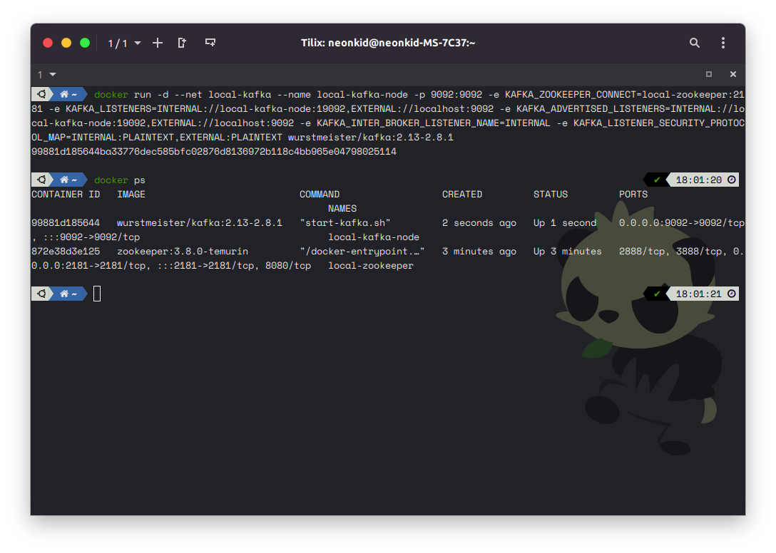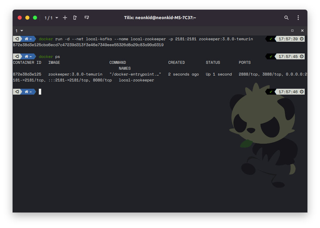 $ docker run -d --net local-kafka --name local-zookeeper -p 2181:2181 zookeeper:3.8.0-temurin