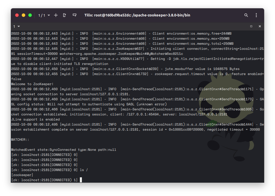[zk: localhost:2181(CONNECTED) 0] ls /