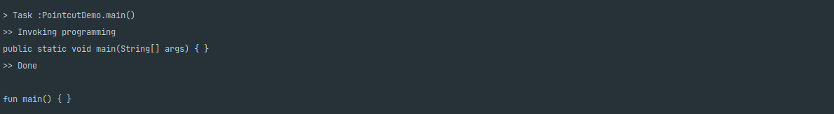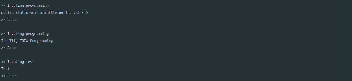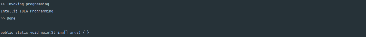 programming ๋ฉ์๋๋ฅผ ํธ์ถํ๊ธฐ ์ ์ println์ ํ๊ณ , ํธ์ถํ๊ณ ๋ ๋ค, Done์ println ํด๋ณด๋๋ก ํ๊ฒ ์ต๋๋ค.