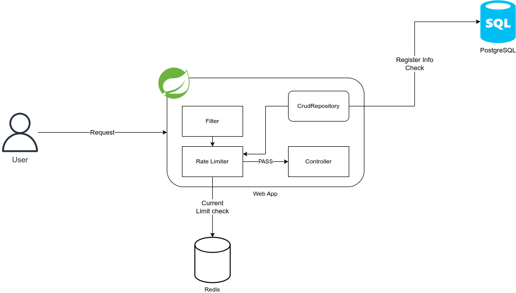 Spring Cloud Gateway๋ฅผ ์ ํ๋ฆฌ์ผ์ด์ ์๋ฒ ์๋จ์ ๋๊ฒ ๋๋ค๋ฉด ํด๋ผ์ด์ธํธ๋ Spring Cloud Gateway ์ฃผ์๋ฅผ ํธ์ถํ๊ฒ ๋ ๊ฒ์ด๋ฉฐ ์ฌ๊ธฐ์ Rate Limit ๊ตฌํ์ฒด๋ฅผ ์ฌ์ฉํ์ฌ ํธ๋ํฝ์ ์กฐ์ ํ ์ ์์ต๋๋ค. ์์ nginx์์ ๊ฐ ์ฌ์ฉ์๋ณ ์๋น์ค ํธ๋ํฝ ๊ด๋ฆฌ๋ฅผ ์ํด ๊ด๊ณํ ๋ฐ์ดํฐ๋ฒ ์ด์ค ๋ฑ์ ํตํ์ฌ ์ฌ์ฉ์ ์๋ณ ์ ๋ณด๋ฅผ ๋ฏธ๋ฆฌ ์ฌ์ ์ ์ ์ฅํด๋์ด Redis๋ก๋ ํ์ฌ ํธ๋ํฝ ํธ์ถ๋์ ์ ์ดํ๊ณ , ๊ด๊ณํ ๋ฐ์ดํฐ๋ฒ ์ด์ค๋ก๋ ์ฌ์ฉ์์๊ฒ ํ ๋นํ ์ด๊ธฐ ํธ๋ํฝ ์กฐ์ ๋๊ณผ ์ค์ ๊ฐ์ ๊ด๋ฆฌํ๋ ๋ฐ ์ฌ์ฉํ๋๋ก ๊ตฌํํ ์ ์์ต๋๋ค.