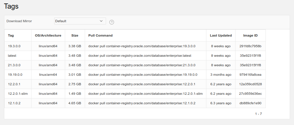 $ docker pull container-registry.oracle.com/database/enterprise:19.19.0.0