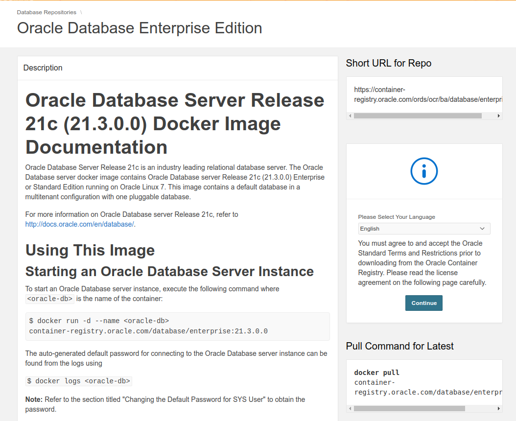 Welcome to the Oracle Container Registry Easy access to Oracle products for use in Docker containers