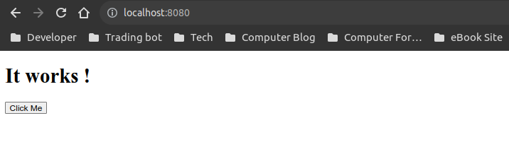 ์ด์ ์๋ฒ๋ฅผ ์คํํ๋ฉด Click Me ๋ผ๋ ๋ฒํผ์ด ๋ง๋ค์ด์ง๊ณ ์ด ๋ฒํผ์ ํด๋ฆญํด๋ณด๋ฉด...