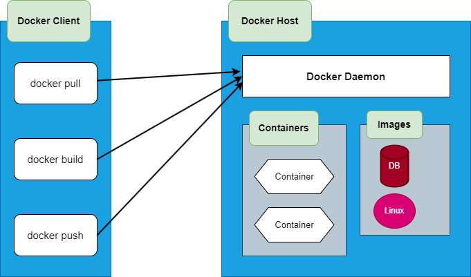 Docker๋ฅผ ๊ธฐ๋ณธ์ ์ผ๋ก ์ค์นํ๊ฒ ๋๋ฉด ์์ ๊ฐ์ ๊ตฌ์กฐ์ ํํ๋ก ์ค์นํ๊ฒ ๋ฉ๋๋ค. ๊ธฐ๋ณธ์ ์ผ๋ก Docker ๋ช ๋ น์ ์ํํ๊ธฐ ์ํ ํ๋ก๊ทธ๋จ์ธ Docker Client์ ๊ทธ ๋ช ๋ น์ ๋ฐ์์ฃผ๋ Docker Host๋ก ๋๋๋๋ฐ, ์ด Docker Host์๋ Docker Daemon์ด ํฌํจ๋์ด ์์ผ๋ฉฐ ์ด๋ ๋น๋ํ ๋ ์ฌ์ฉํ๋ ๊ฒ์ด ์๋ ์ค์ ์ปจํ ์ด๋ ์ด๋ฏธ์ง๋ฅผ ์คํํ๋ ์ญํ ์ ํฉ๋๋ค. ๋ฟ๋ง ์๋๋ผ Host OS์ ๋ํด ๊ด๋ฆฌ์ ๊ถํ(Root Privileges)์ ์๊ตฌํ์ฌ ์ค์ ์ ํ๋ฆฌ์ผ์ด์ ๊ตฌ๋์ ํ๋ ๋ฐ ํ์ ์ด์์ ๊ถํ์ ์ถ์ถํ๊ธฐ ๋๋ฌธ์ ์๋ฌด๋๋ ๋น๋๋ง์ ์ํด ์ฌ์ฉํ๋ค๋ฉด ์กฐ๊ธ ๊บผ๋ ค์ง๊ฒ ๋ฉ๋๋ค.